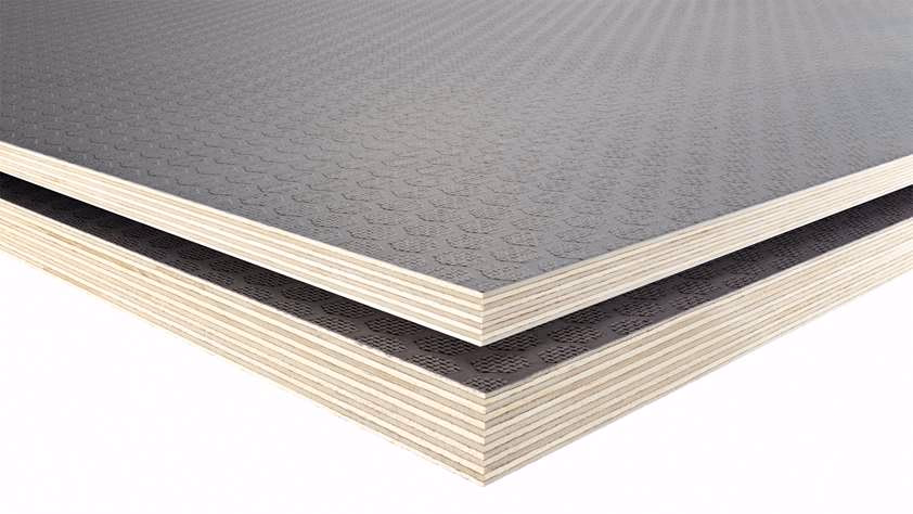 Özel desenli anti-slip plywood. Hexagon desenli yüzeyi ile kaymaz zemin sağlar.
